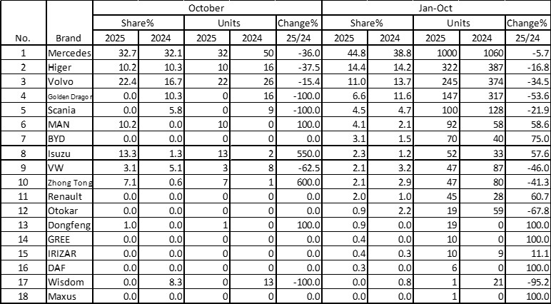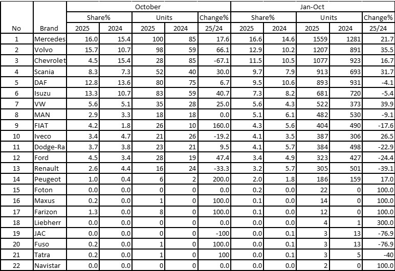 New CV above 3.5-ton Registration According to Brands: January-October 2025